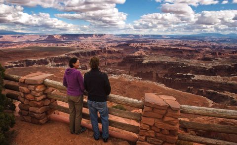 An easy 2-mile round-trip trail along the rim of Island in the Sky with jaw-dropping views of the Colorado River canyons stretching into the distance.